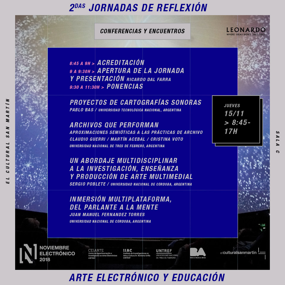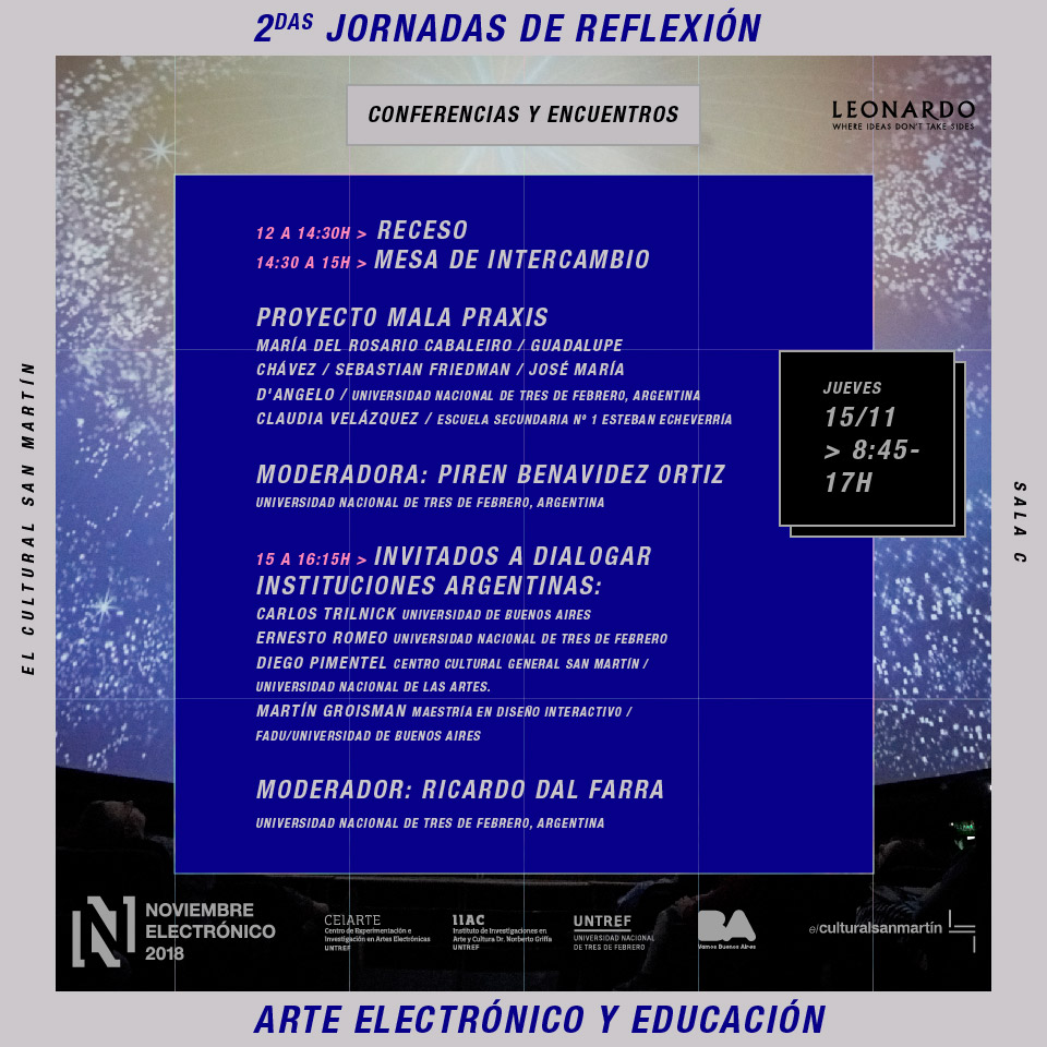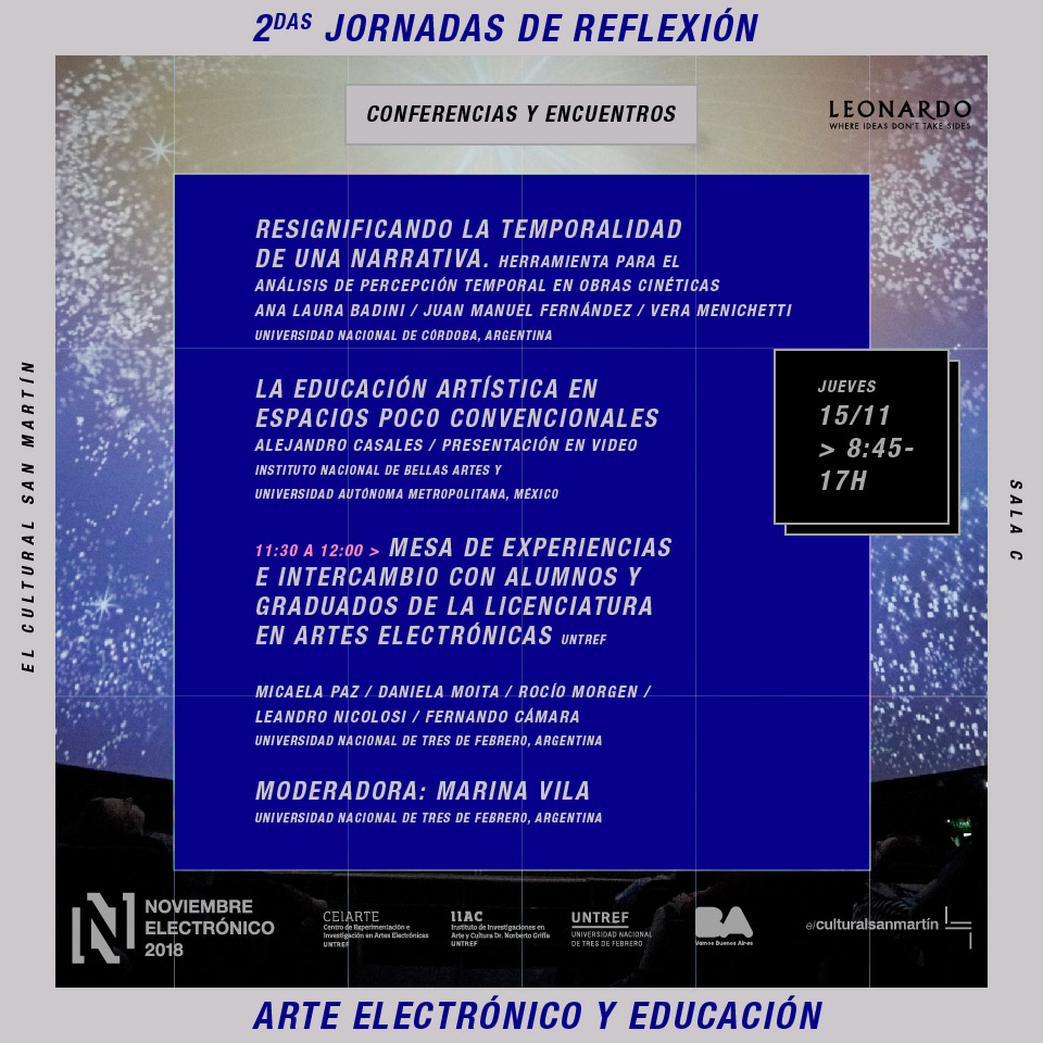 11:30 a 12:00 – Mesa de experiencias e intercambio con alumnos y graduados de la Licenciatura en Artes Electrónicas (UNTREF)